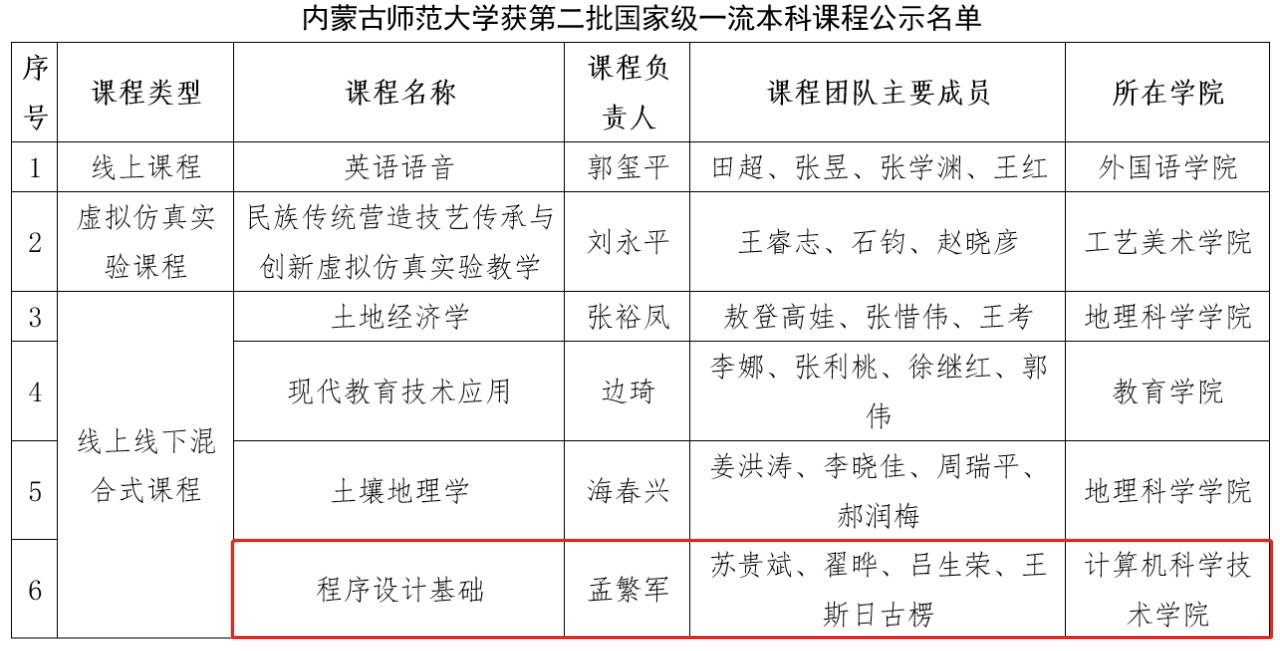 4月11日,教育部高等教育司发布了《关于第二批国家级一流本科课程认定结果的公示》,beat365官网程序设计基础教学团队负责建设的《程序设计基础》课程名列其中,是beat365官网被认定的第二门国家一流线上线下混合式一流课程。
