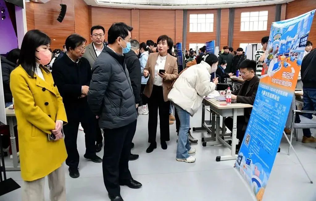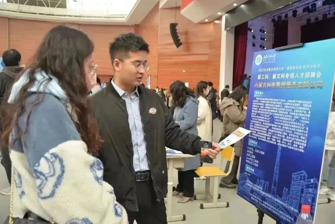 3月24日,由我校招生就业处主办,beat365英国官网网站、化学与环境科学学院、物理与电子信息学院、地理科学学院、心理学院、历史文化学院、工艺美术学院承办的“奋进新征程 筑梦向未来”beat365英国官网网站2023年新工科、新文科专场人才招聘会在盛乐校区学生事务中心二楼多功能演播大厅举行。校党委副书记张海峰及相关部门、学院负责同志现场参加活动,beat365官网党委书记玉柱、副书记、副院长沙金,毕业生辅导员与用人单位及毕业生亲切交流。计算机学院共有来自29家单位招聘岗位数658个,共有287人有签约意向并投递简历,其中本科生266人,研究生21人。
