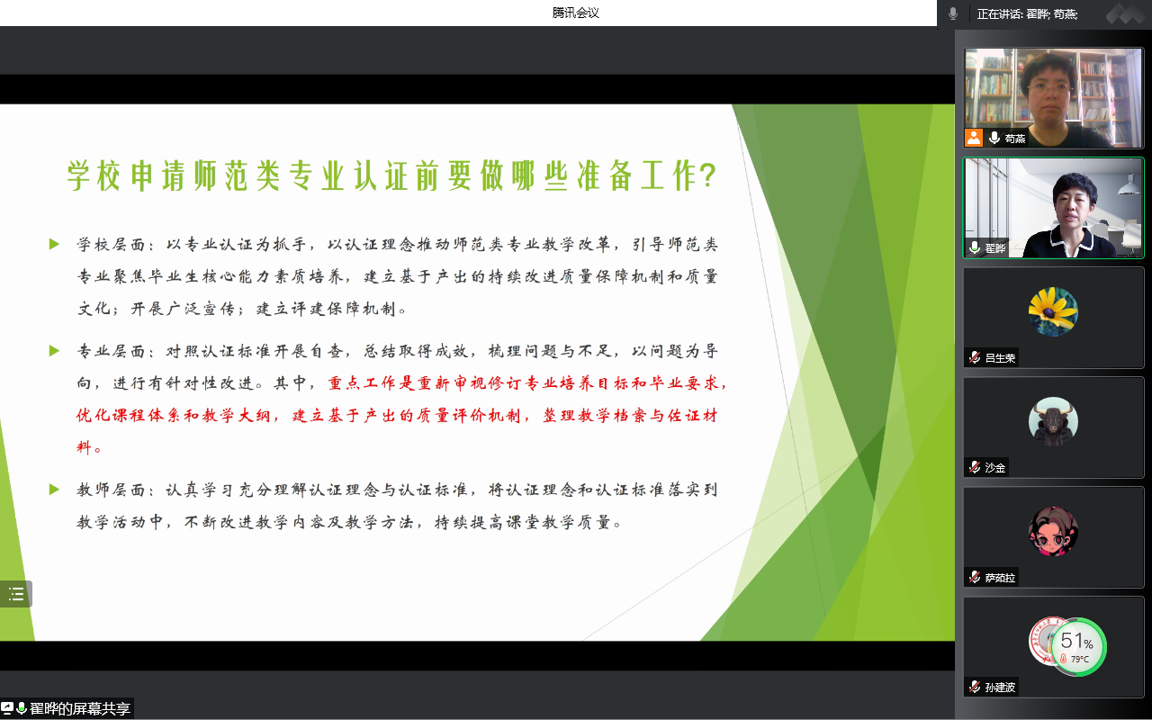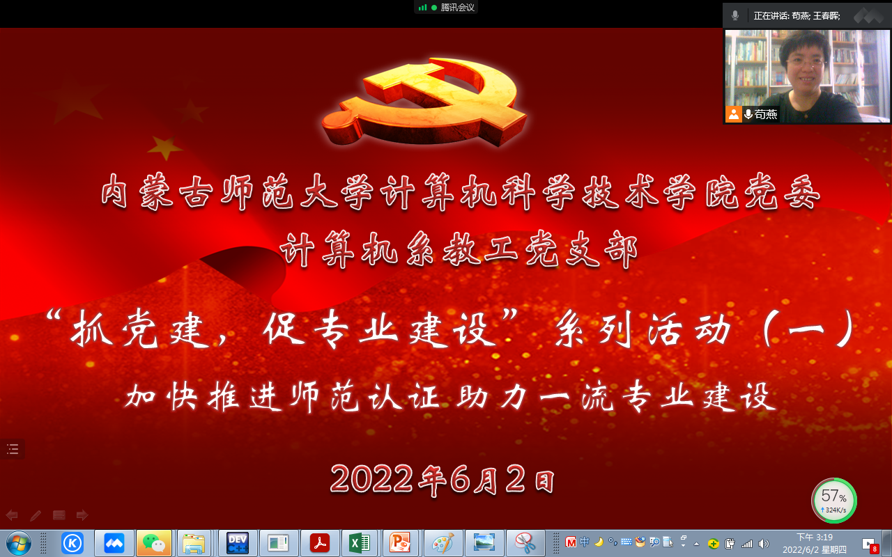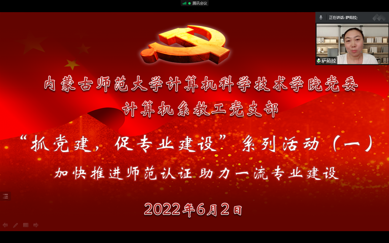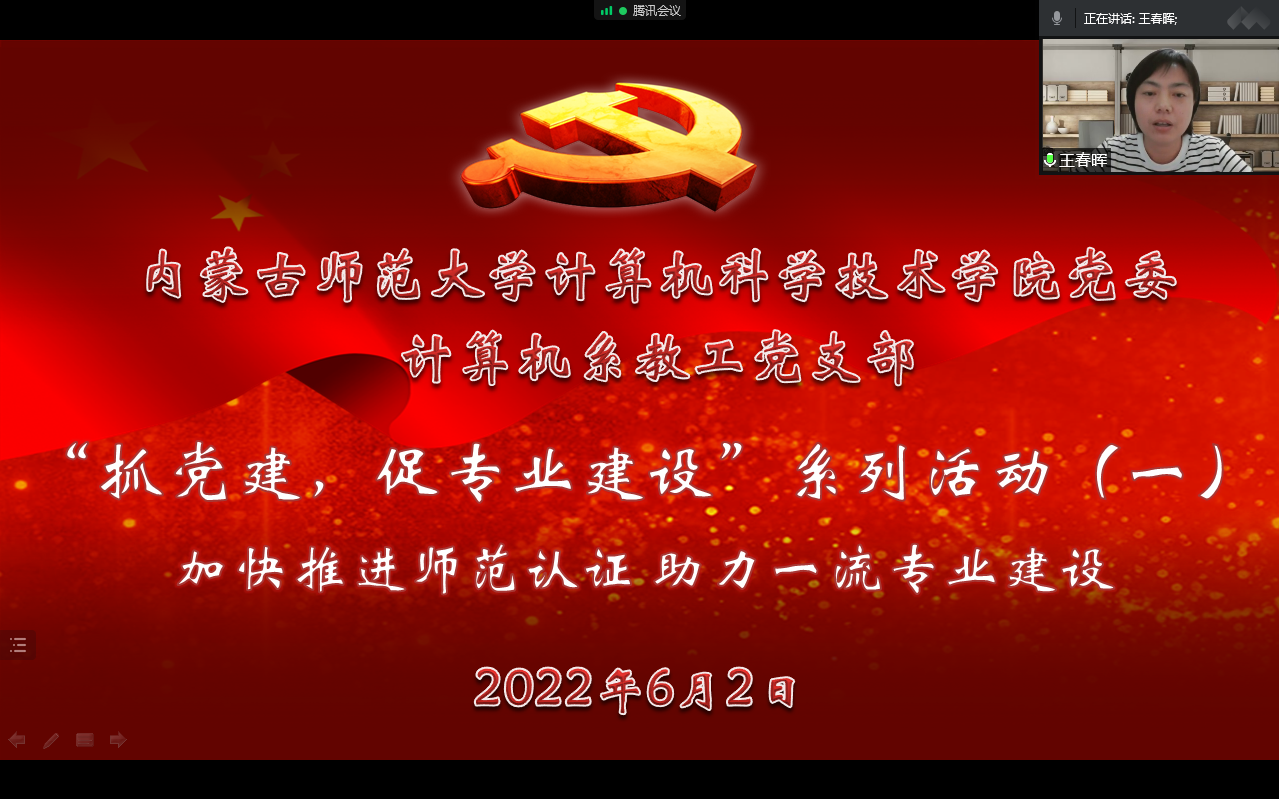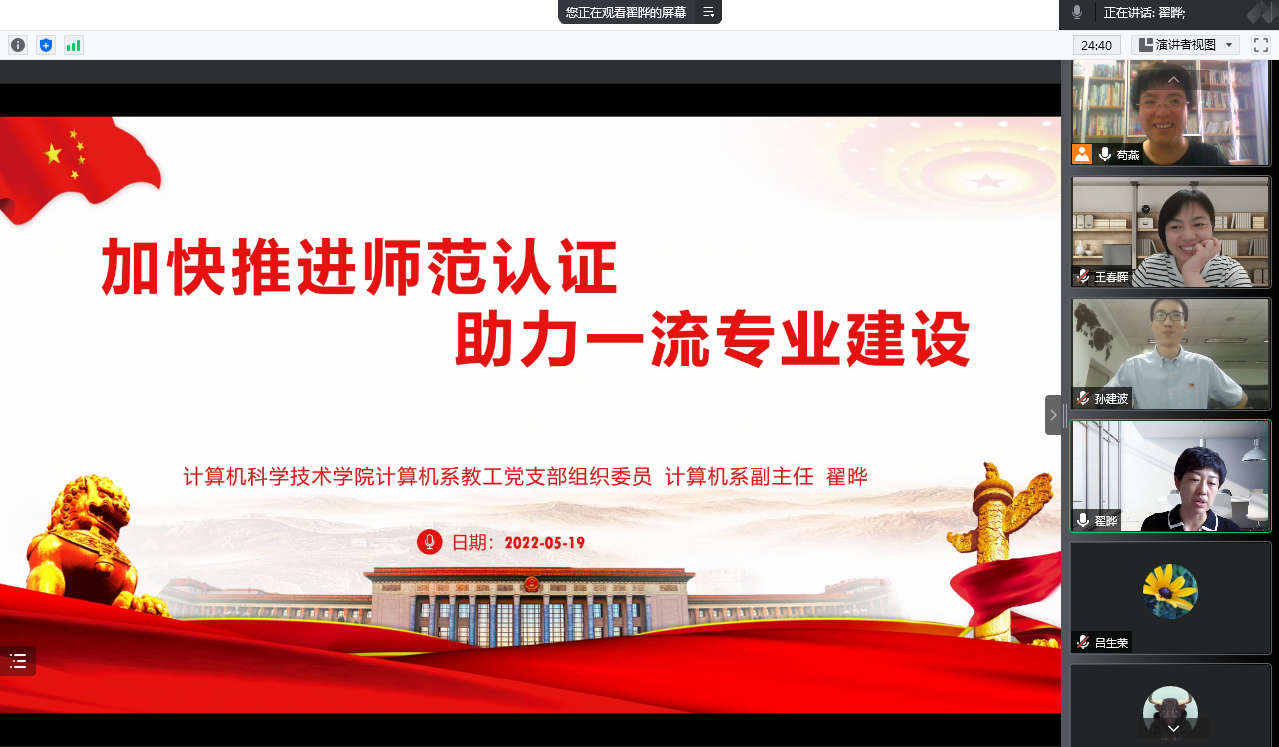 会上,计算机系党支部组织委员、计算机系副主任翟晔围绕beat365官网师范认证工作了详细汇报。首先回顾了beat365官网师范认证的前期准备工作、汇报了目前beat365官网师范认证的进展情况并介绍了下一步的工作计划,最后强调了师范认证作为beat365官网今年的头等要务,需要每一位老师的鼎力支持和全力配合。汇报之后,老师们和系主任围绕师范认证的重要性和目前存在的困难进行了激烈的讨论和交流,大家纷纷表示愿意为了攻克师范认证这个重任贡献自己的一份力量。