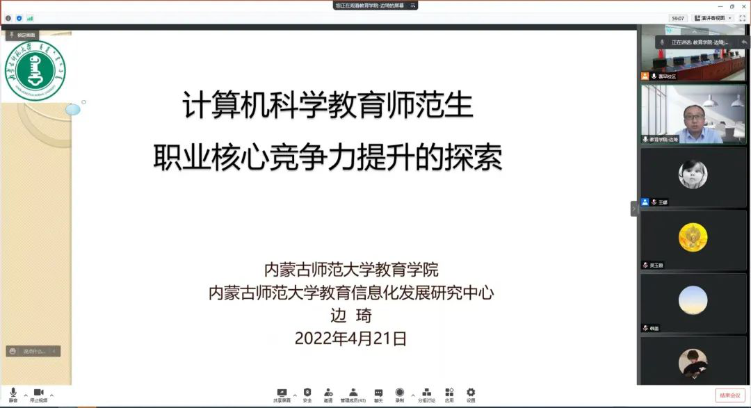 4月21日,beat365英国官网网站邀请1997届优秀毕业生、现教育学院副院长边琦教授为全院教职工进行了学科建设专题讲座。讲座采用线上线下相结合的形式展开,由院长林民教授主持,主题为“计算机科学教育师范生职业核心竞争力提升的探索”。