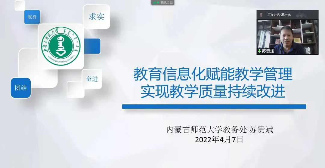 4月7日,beat365官网邀请了教务处副处长苏贵斌副教授为全院教师进行了题为“教育信息化赋能教学管理,实现教学质量持续改进”的专题讲座。讲座采用线上线下相结合的方式展开,由院长林民教授主持。