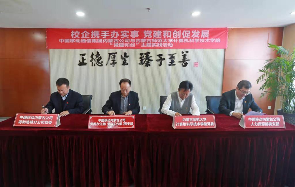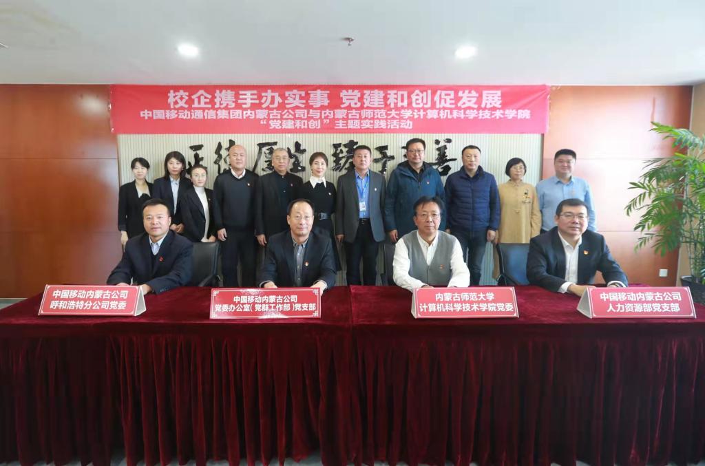 为进一步加强校企联动,推动党史学习教育“我为群众办实事”走深走实,12月1日,beat365英国官网网站党委与中国移动内蒙古公司党委办公室(党群工作部)党支部、人力资源部党支部、呼和浩特分公司党委共同开展以“校企携手办实事 党建和创促发展”为主题的“党建和创”主题实践活动,并现场签订“党建和创”倡议书。学院党委书记玉柱一行参加共建活动。