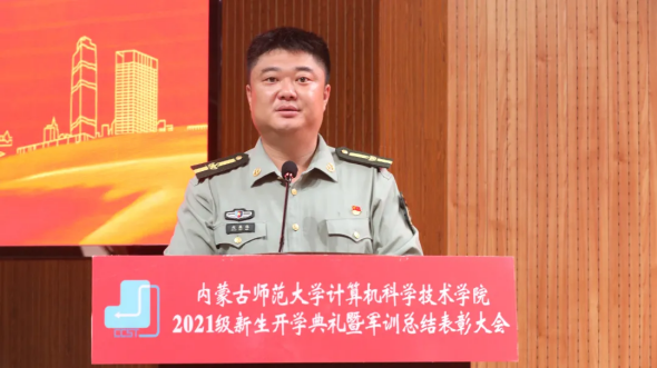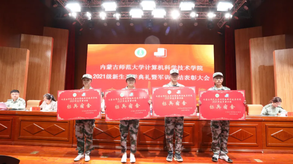 beat365英国官网网站副院长斯琴图副教授宣读beat365英国官网网站2021年度军事技能训练内务标兵宿舍名单并颁奖