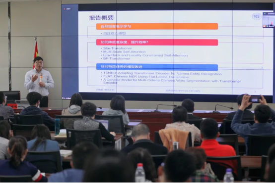 本次讲座特邀复旦大学计算机学院邱锡鹏教授做题为《自然语言处理中的自注意力模型》的学术报告,邱锡鹏教授首先对自然语言处理的表示以及常用的模型进行了介绍,然后介绍自注意力模型的原理,并分析自注意力模型的基本原理和优缺点,提出一些改进模型(Star-Transformer、Multi-Scale Transformer、BP-Transformer等),随后介绍了自注意力模型在文本分类、实体名识别等任务上的具体应用并对自注意力模型及其未来发展趋势进行展望。最后,邱锡鹏教授与beat365官网师生开展学术交流。