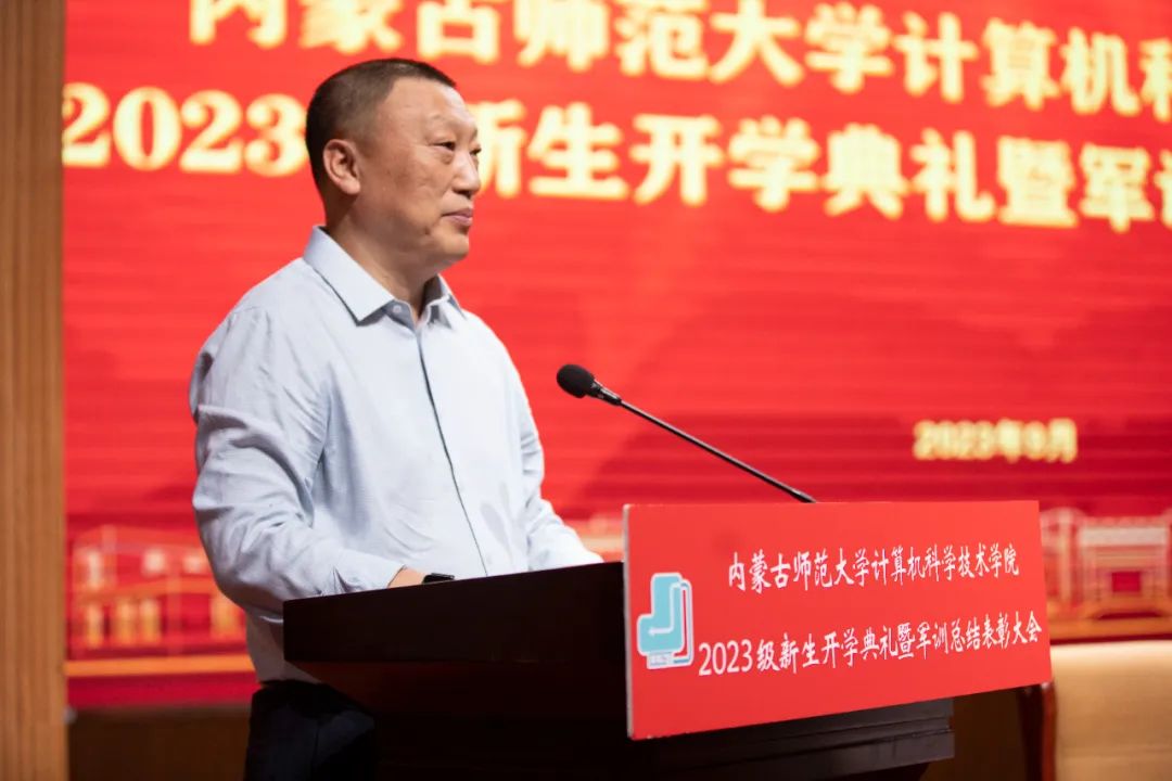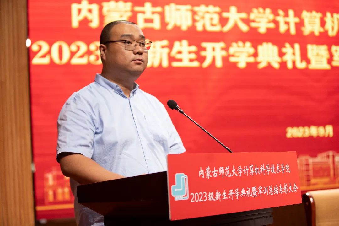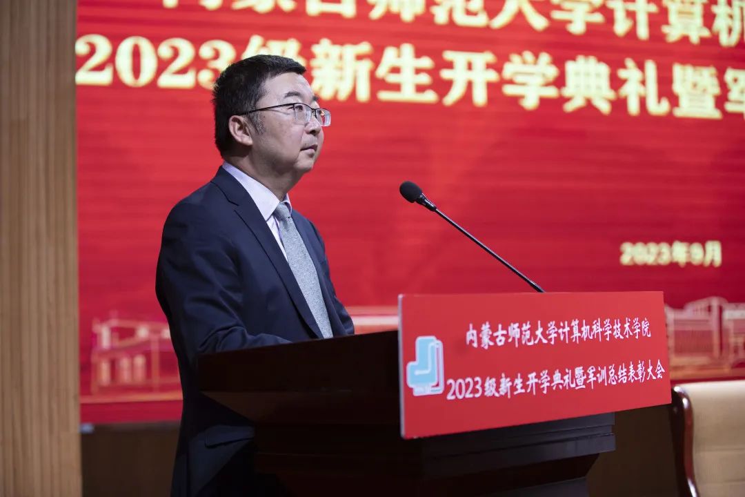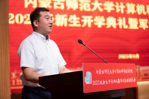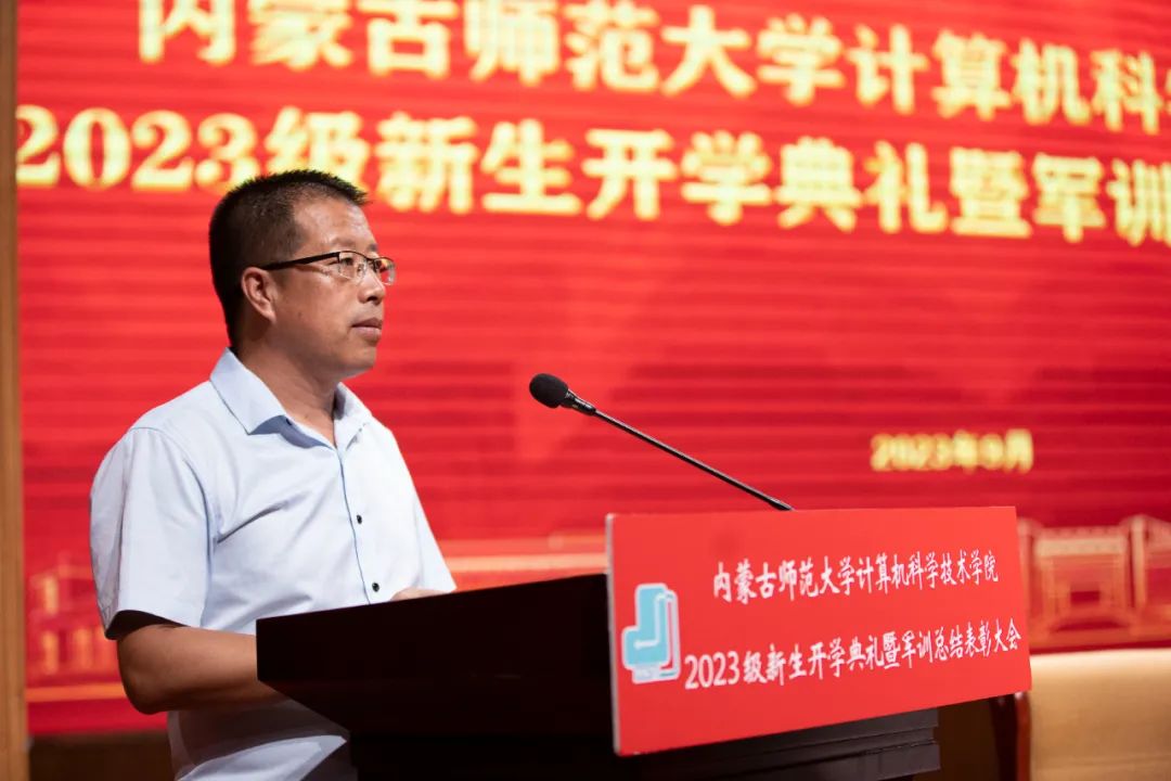 beat365英国官网网站党委书记王海龙,beat365英国官网网站党委副书记、院长、博士生导师林民,副院长斯琴图,计算机系主任朝力萌,网络与软件工程系主任孟繁军,副主任葛湘巍、徐行健,数据科学与人工智能系副主任包萨仁娜,全体新生班辅导员以及beat365官网2023级373名本科生和59名研究生出席大会。学院团总支书记赵巍伟主持大会。
