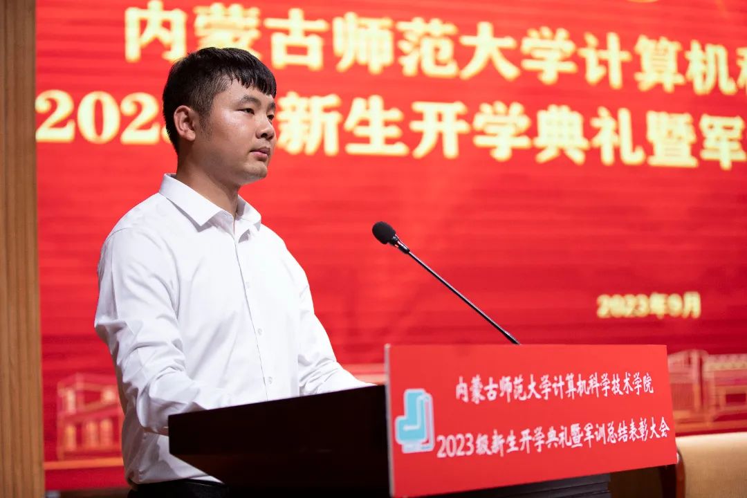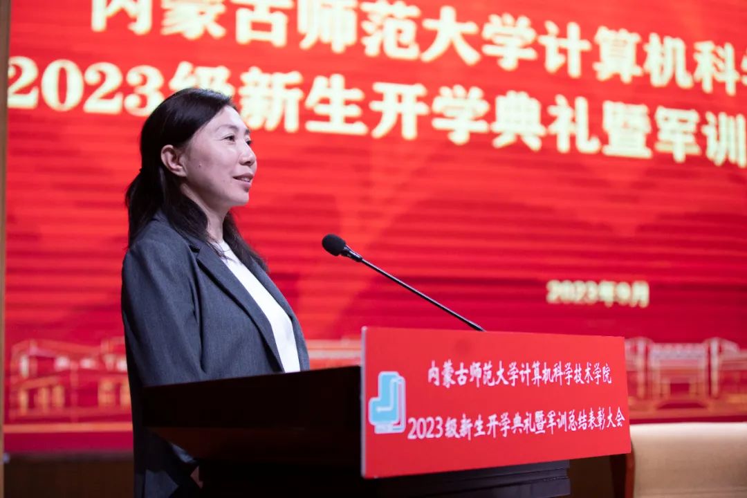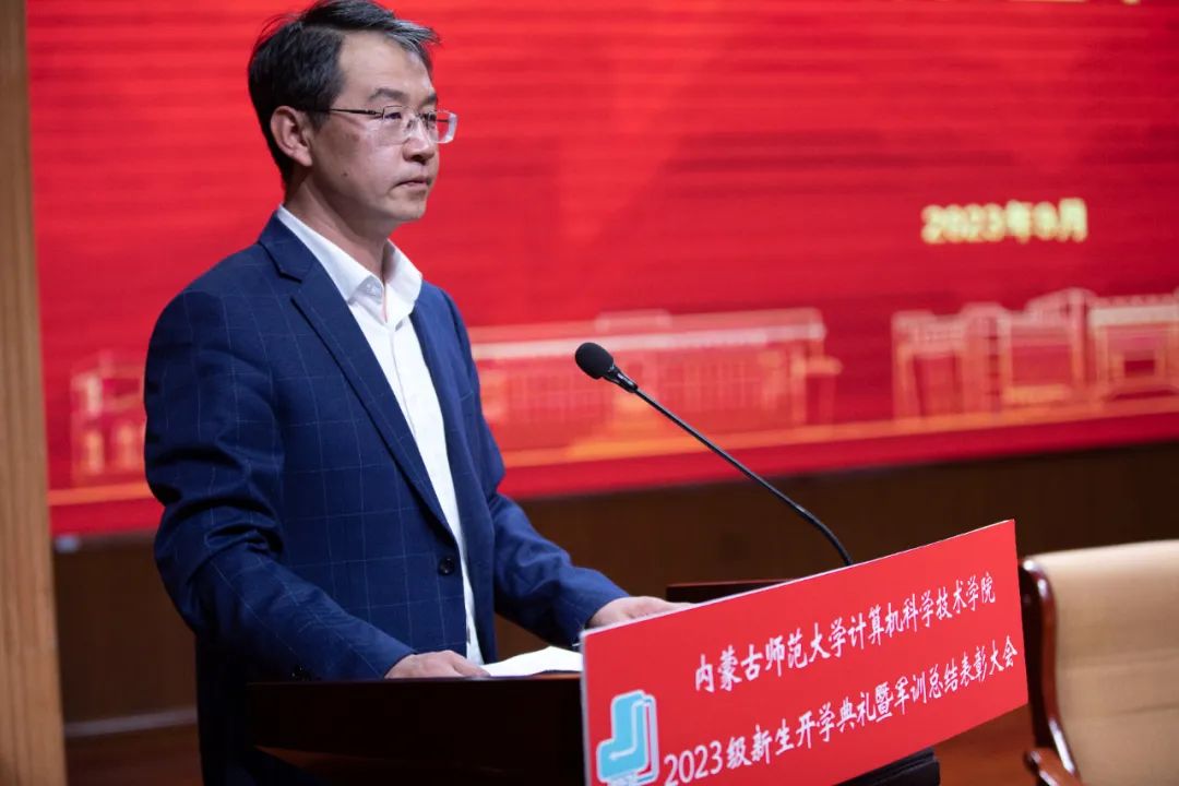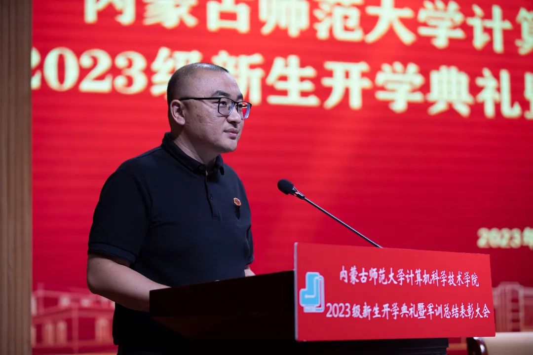 beat365英国官网网站党委书记王海龙,beat365英国官网网站党委副书记、院长、博士生导师林民,副院长斯琴图,计算机系主任朝力萌,网络与软件工程系主任孟繁军,副主任葛湘巍、徐行健,数据科学与人工智能系副主任包萨仁娜,全体新生班辅导员以及beat365官网2023级373名本科生和59名研究生出席大会。学院团总支书记赵巍伟主持大会。