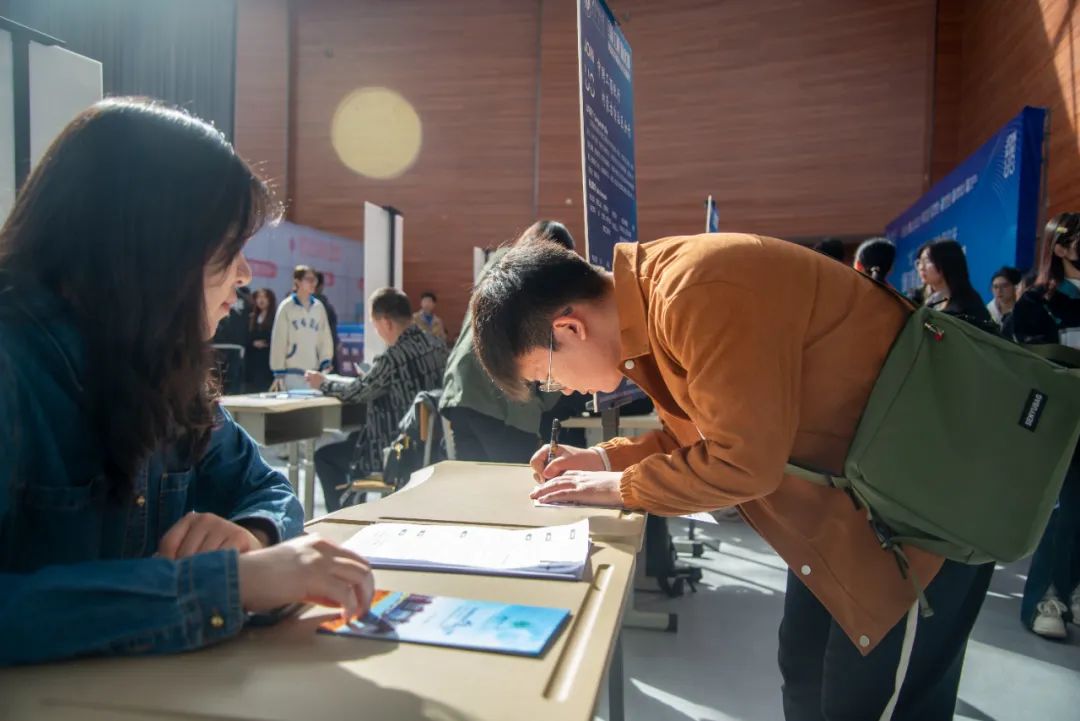 与此同时,学校“经纬职业发展咨询工作室”还设置了就业指导与政策咨询专区,就大学生关心的简历制作、面试指导、求职技巧等进行现场解读和辅导。在职业生涯规划讲座专区,咨询师陈焱老师和沈晓倩老师分别以“人工智能时代大学生职业发展策略”和“一大波工作来袭,该做好哪些求职准备”为题,为各学院2021级、2022级学生开展职业生涯规划讲座,帮助学生树立职业生涯规划意识,明确未来奋斗目标。现场还设置了创新创业成果展示专区,各学院将工坊、工作室、专业团队代表性学科竞赛和双创教育成果向用人单位展示。当天下午,各学院同期开展“访企拓岗”专项行动,学院领导班子、系部主任与用人单位代表面对面座谈,就人才招聘、企业需求、人才培养等方面进行深度交流。