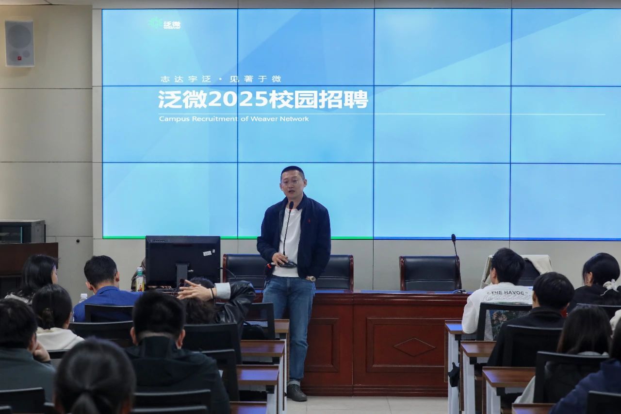 为扎实推进2025届毕业生就业服务工作,搭建精准供需对接平台,4月10日下午,泛微网络科技股份有限公司校园专场宣讲会在盛乐校区大数据楼114报告厅成功举办。活动吸引beat365官网2025届相关专业毕业生及2026届学生参与,现场通过企业宣讲、校友分享、互动答疑、简历投递、现场面试等环节。
