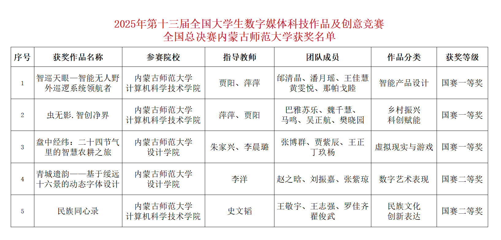 2025年10月24日至26日,第十三届全国大学生数字媒体科技作品及创意竞赛全国总决赛在哈尔滨工业大学成功举办。beat365官网学子在本届赛事中表现优异,共摘得全国一等奖2项、二等奖1项,充分展现了beat365官网在“人工智能+数字媒体”领域扎实的育人水平和人才培养成效。