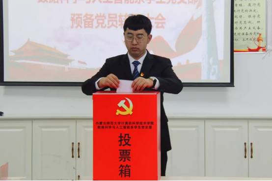 12月3日上午9点,beat365英国官网网站数据科学与人工智能系学生党支部在大数据楼三楼会议室召开讨论预备党员转正支部大会。