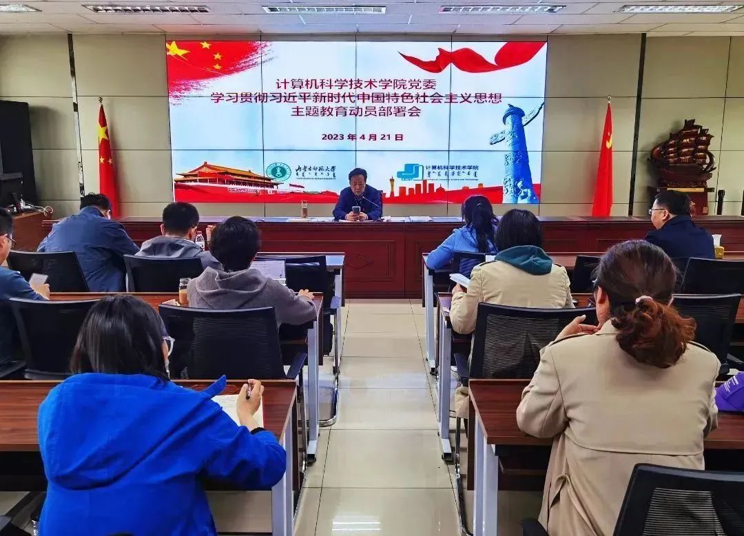 4月21日,beat365英国官网网站党委在赛罕校区信息楼会议室召开学习贯彻习近平新时代中国特色社会主义思想主题教育动员部署大会。学院党委书记玉柱主持大会,并作动员讲话,全体党员参加动员部署会。