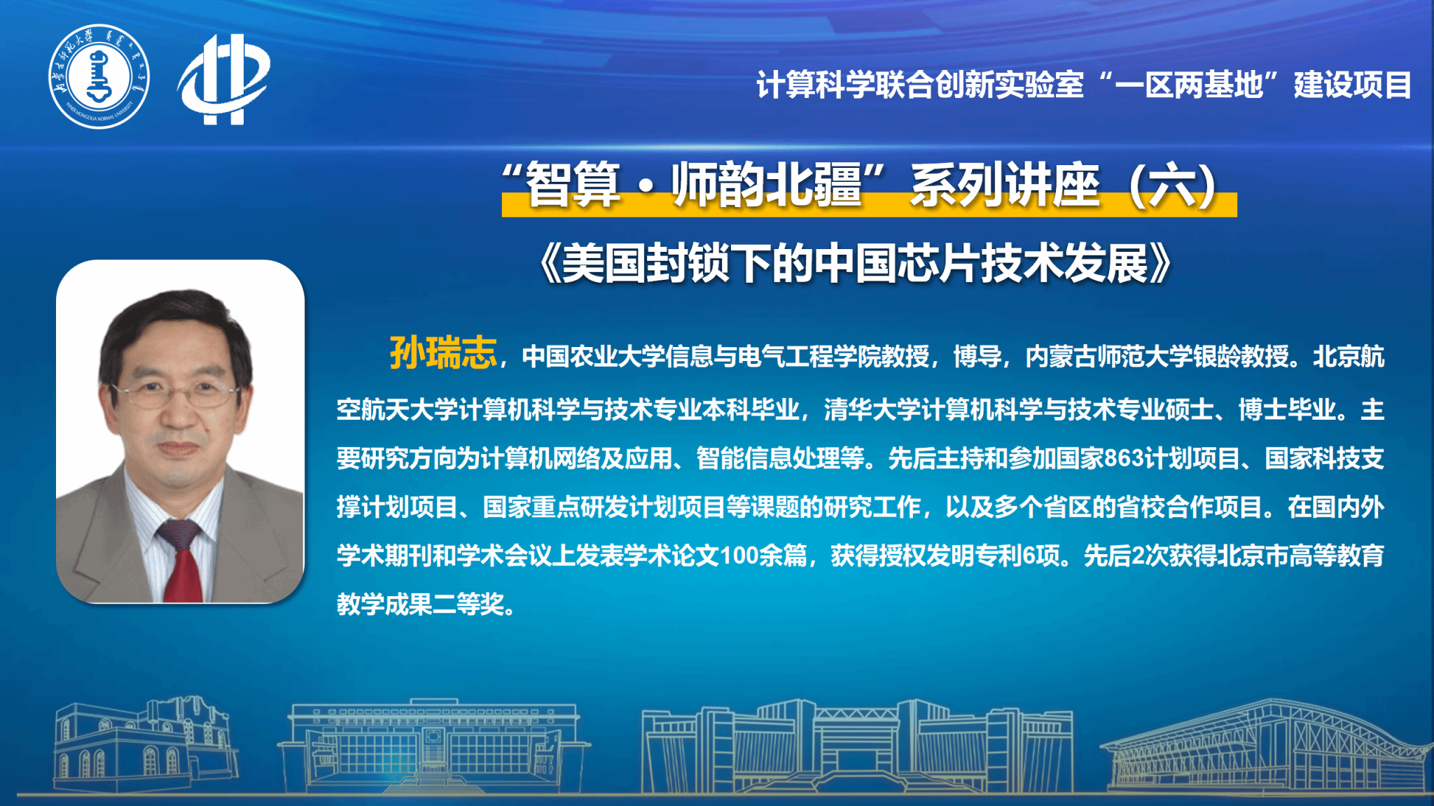 11月21日,beat365英国官网网站“智算·师韵北疆”系列讲座第六期在大数据楼114室成功举行。讲座特邀中国农业大学信息与电气工程学院教授,博士研究生导师,beat365英国官网网站银龄教授孙瑞志担任主讲嘉宾,围绕“美国技术封锁背景下中国芯片产业的自主创新路径”展开深入分享,2025级硕士研究生参加活动。活动由学院副院长斯琴图主持。